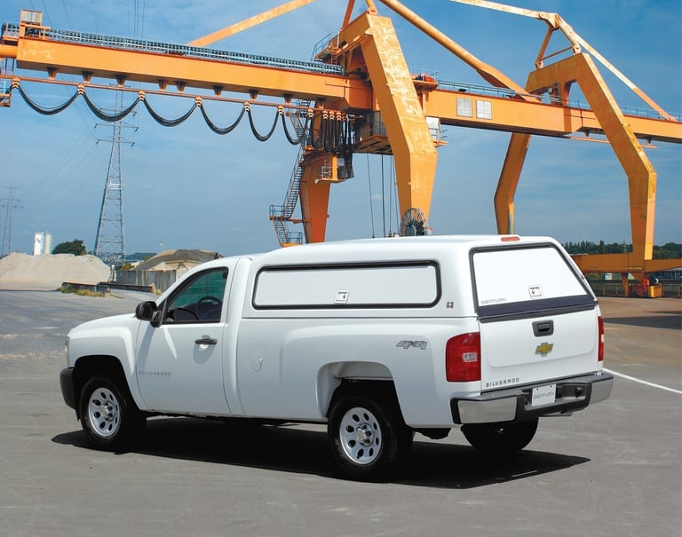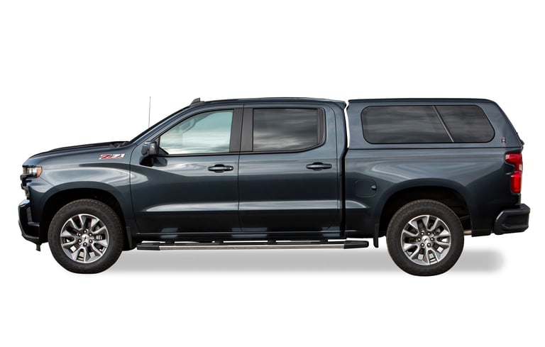 This spacious mid-rise truck cap with exceptional fit and finish provides up to 15% more enclosed cargo area than cab-high models. Standard features include a full size, all-glass rear door, and 50/50 side sliding windows with screens.